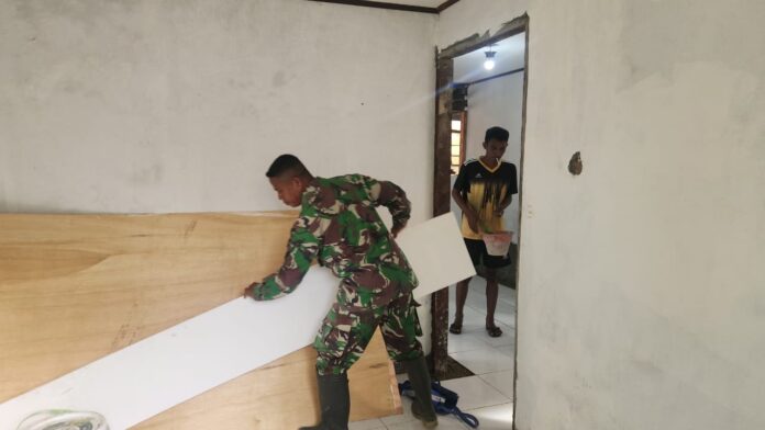 SORONG – Satgas TNI Manunggal Membangun Desa (TMMD) KE – 124 Kodim 1802/Sorong terus menunjukkan semangat gotong royong bersama masyarakat dalam melanjutkan perehaban 8 unit rumah tidak layak huni dan pembersihan lingkungan lokasi TMMD di Kampung Yeflio Distrik Mayamuk Kabupaten Sorong. Sabtu (17/05/2025)