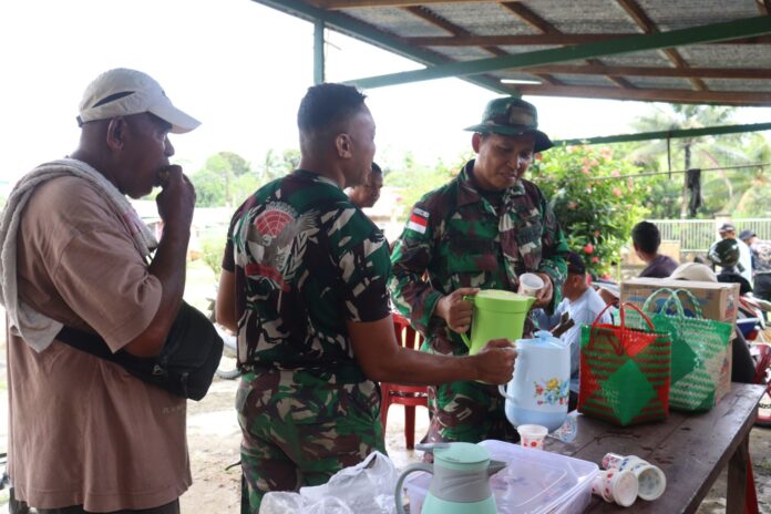 MALINAU, Kalimantan Utara,– Suasana pagi di Desa Tanjung Lapang, Kecamatan Malinau Barat, Kabupaten Malinau, Sabtu (9/8/2025), terasa begitu akrab dan hangat. Di sela kegiatan karya bakti Satgas TMMD Ke-125 Tahun 2025 Wilayah Perbatasan Kodim 0910/Malinau membersihkan Gereja Katolik, para ibu desa tampak sibuk menata gorengan hangat di atas meja panjang untuk para prajurit.