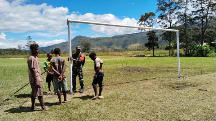 Wamena — Satgas TMMD Ke-126 Kodim 1702/Jayawijaya melaksanakan kegiatan positif dengan membangun tiang gawang sebagai sarana olahraga bagi pemuda di Kampung Algonik. Pembangunan fasilitas ini diharapkan dapat memberikan manfaat jangka panjang bagi masyarakat setempat.