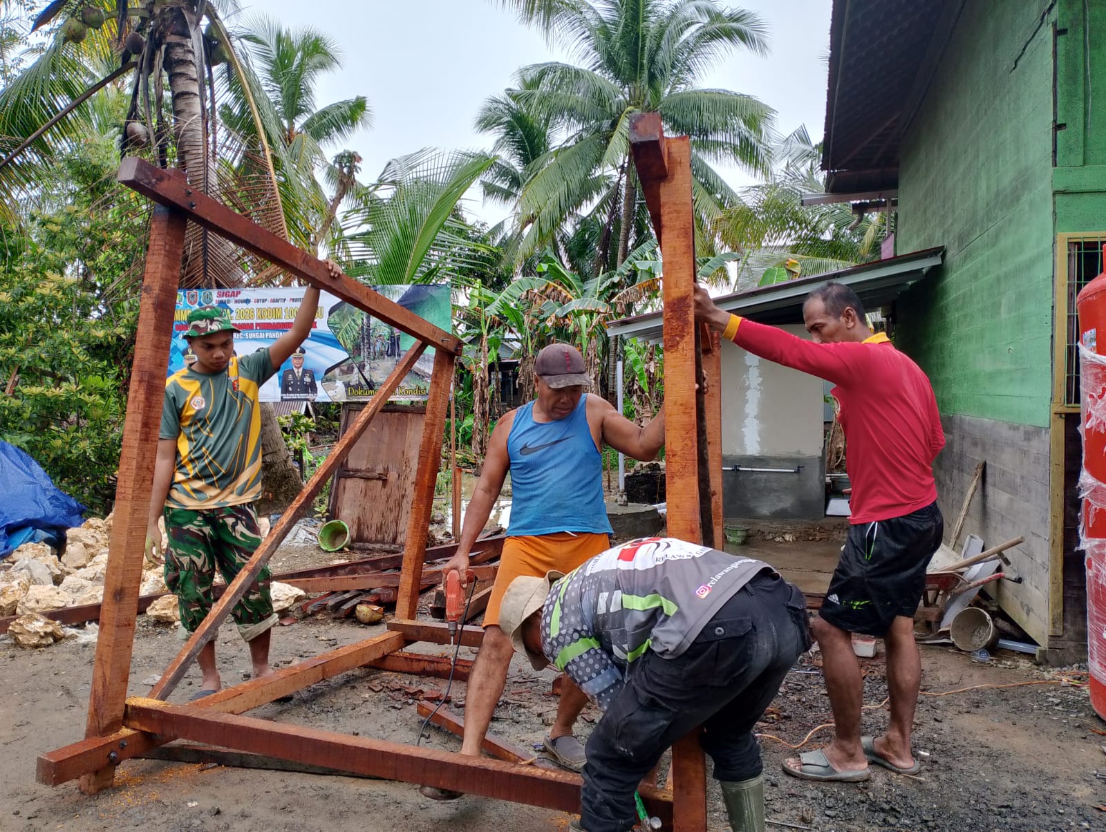 Hulu Sungai Utara – Satgas TNI Manunggal Membangun Desa (TMMD) ke-127 Kodim 1001/HSU-BLG melaksanakan pembangunan fasilitas Mandi, Cuci, Kakus (MCK) di TPA Al Ikhlas serta Musholla/Langgar Darul Ibadah yang berlokasi di Desa Hambuku Hulu, Kecamatan Sungai Pandan, Kabupaten Hulu Sungai Utara, Minggu (15/02/2026).