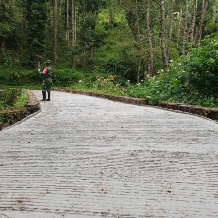 KABUPATEN BANDUNG – Anggota Satuan Tugas Pembinaan Masyarakat Desa (TMMD) Reguler Ke-127 Kodim 0624/Kabupaten Bandung bersama masyarakat Desa Cipelah, Kecamatan Rancabali, melaksanakan kegiatan pengecoran jalan pada hari Kamis (26/2) pukul 16.00 WIB hingga selesai, bertempat di Kampung Simpang Babakan Garut.