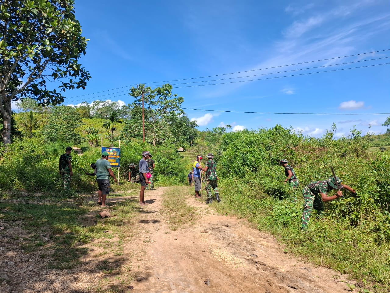 Pembersihan jalan yang dilakukan meliputi penyingkiran semak belukar, pepohonan kecil, serta material lain yang menghalangi dan dapat mengganggu proses perbaikan. Kegiatan ini melibatkan personel TNI bersama dengan masyarakat desa yang bergotong royong, menunjukkan sinergitas yang kuat antara TNI dan rakyat.