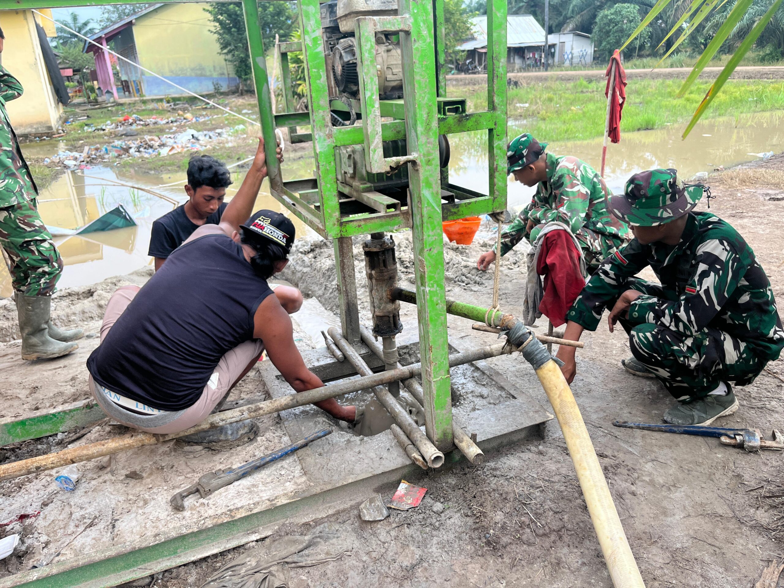 BANYUASIN – Menjelang penutupan kegiatan TMMD ke-127, anggota Satgas Kodim 0430/Banyuasin terus berjuang keras dan berpacu dengan waktu. Saat ini, pekerjaan pembangunan sumur bor titik tiga di Desa Wonosari sedang dikebut agar dapat selesai tepat waktu, tinggal H-3 hari menjelang penutupan resmi program TMMD.