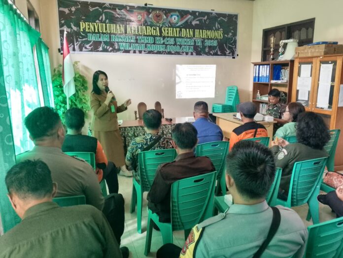 MALINAU, Kalimantan Utara,– Program TNI Manunggal Membangun Desa (TMMD) Ke-125 Tahun 2025 Wilayah Perbatasan Kodim 0910/Malinau kembali membuktikan bahwa misi mereka bukan sekadar pembangunan fisik. Selain membuka akses desa melalui pembukaan jalan, Satgas TMMD juga berkomitmen membangun pondasi sosial melalui penyuluhan Keluarga Sehat dan Harmonis, bertempat di Kantor Desa Tanjung Lapang, Desa Tanjung Lapang, Kecamatan Malinau Barat, Kabupaten Malinau, Selasa (12/8/2025).