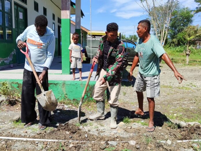 MIMIKA – Satgas TMMD ke-124 Kodim 1710/Mimika terus meningkatkan intensitas kerja di pekan terakhir pelaksanaan program TNI Manunggal Membangun Desa (TMMD) di Kampung Pigapu, Kabupaten Mimika. Dengan semangat yang terus menyala, para personel Satgas bekerja dari pagi hingga sore untuk menyelesaikan berbagai proyek pembangunan, Kamis (29/5/2025).