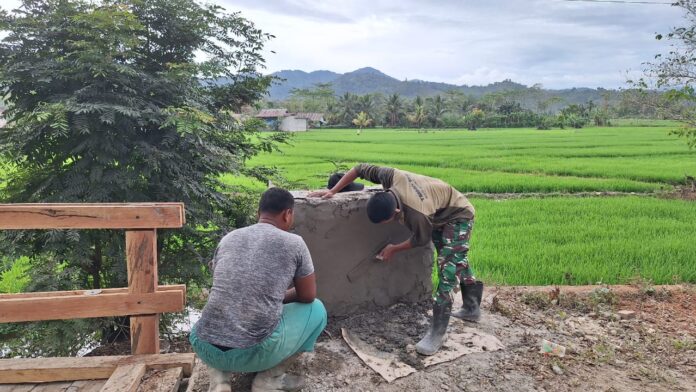 Konawe – Tak hanya jembatan yang dilakukan perehaban, kuping jembatan yang rusak turut diperbaiki oleh anggota satgas TMMD 125 Kodim 1417/Kendari bersama masyarakat, di sasaran jembatan I, Desa Nekudu, Kec. Asinua, Kab. Konawe, Minggu (10/8).