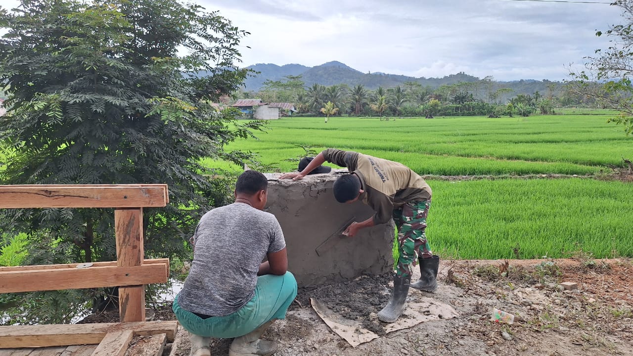 Kuping jembatan yang dulunya retak dan berlubang kini telah disulap menjadi rapih berkat kerjasama dan kegigihan anggota Satgas TMMD 125 bersama masyarakat.