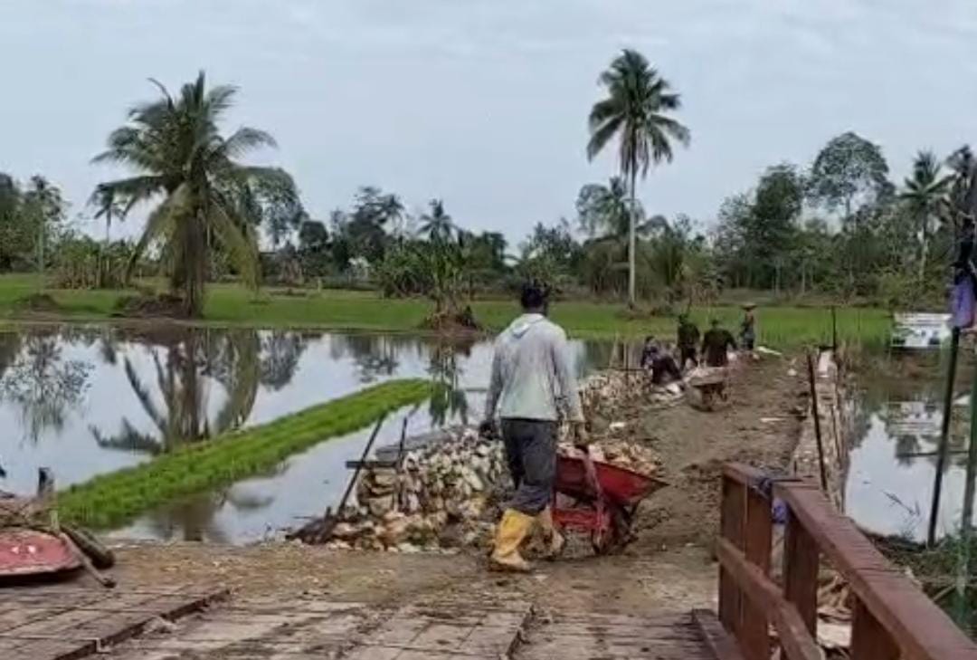 Pembangunan yang dilaksanakan di Desa Hambuku Hulu, Kecamatan Sungai Pandan, Kabupaten Hulu Sungai Utara ini tetap berjalan optimal meski para anggota Satgas menjalankan ibadah puasa.