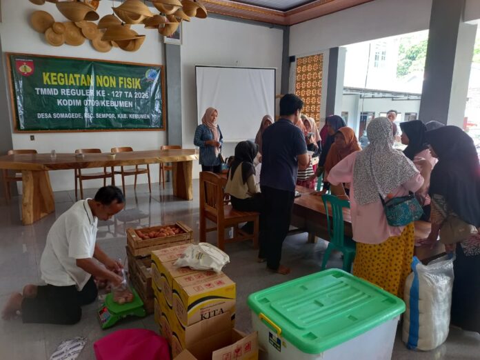 KEBUMEN – Program TNI Manunggal Membangun Desa (TMMD) Reguler ke 127 Kodim 0709/Kebumen, tidak hanya fokus pada pembangunan infrastruktur fisik, tetapi juga menyentuh aspek ekonomi masyarakat. Bertempat di Balai Desa Somagede, Kec. Sempor, Kab. Kebimen. Sabtu (14/02/26)