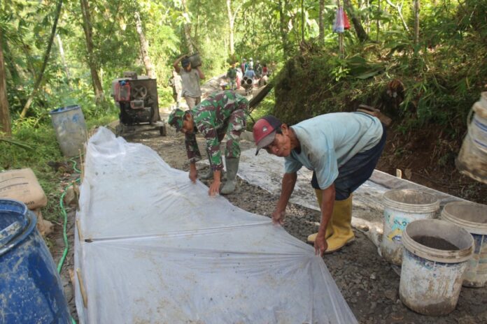 Kebumen – Denting palu berpadu dengan semangat gotong royong mewarnai kegiatan pemasangan begesting rabat beton dalam program TMMD Reguler ke-127 Kodim 0709/Kebumen di Desa Somagede, Kecamatan Sempor, Rabu (11/02/2026).
