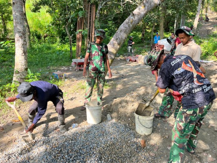 Kendari – Deru suara mesin molen mulai memecah keheningan di Kelurahan Sambuli, Kota Kendari, pada Selasa (17/2). Suara tersebut bergema saat proses pengerjaan sasaran fisik dalam program TMMD 127 di wilayah tersebut.
