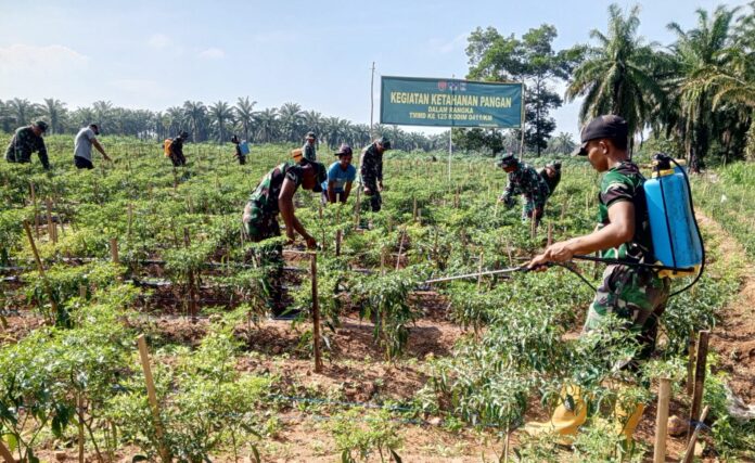 KOTAMETRO – Personel Satgas TMMD ke-125 Kodim 0411/KM menggelar kegiatan Ketahanan Pangan di RT 3 Dusun II, Kampung Sukanegara, Kecamatan Bangunrejo, Kabupaten Lamteng, Rabu (06/08/2025)
