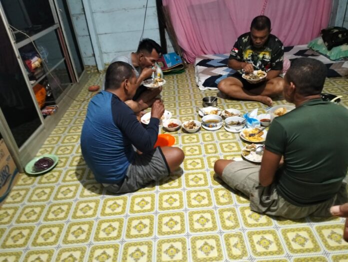 “Beginilah kondisi makan malam kami, meski menu yang disuguhkan ala kadarnya, tapi rasa kebersamaan semakin akrab serasa makan bersama keluarga sendiri,” imbuhnya. (Pendim 1417/Kdi)