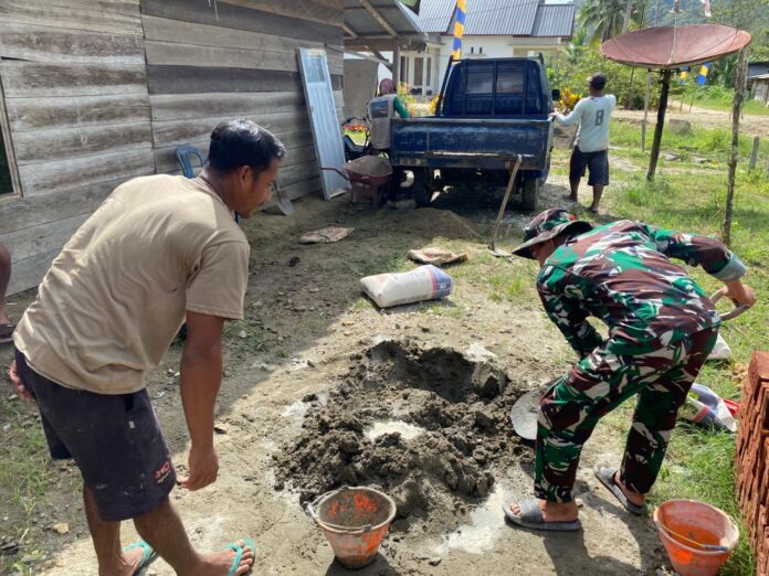 Konawe – Personel Satuan Tugas TNI Manunggal Membangun Desa (TMMD) ke-125 Kodim 1417/Kendari melakukan aksi nyata kemanusiaan. Mereka dengan tekun mengerjakan pembangunan MCK umum untuk warga masyarakat, di Desa Nekudu, Kec. Asinua, Kab. Konawe, Rabu (13/8).