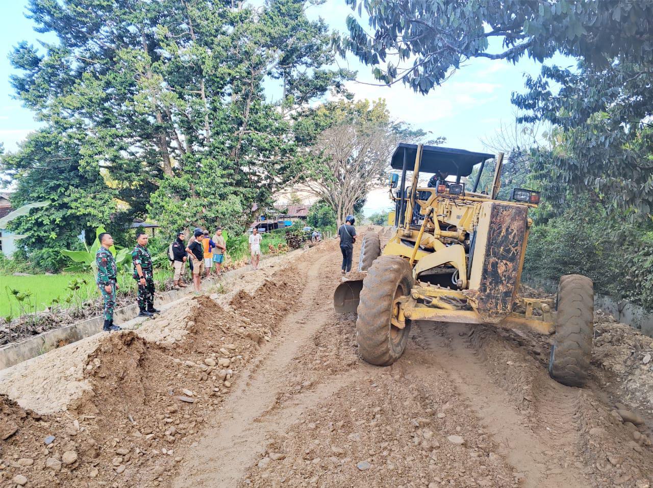Memasuki hari ke tujuh usai pembukaan, penimbunan badan jalan sepanjang 3 kilometer dan lebar 5 m sudah dikerjakan mencapai 26%. (Pendim 1417/Kdi)