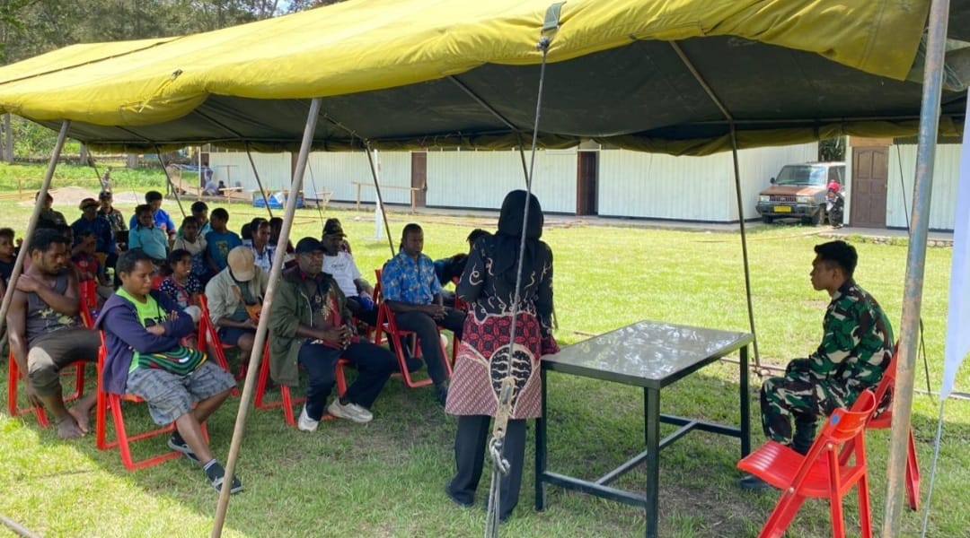Pelaksanaan penyuluhan diikuti oleh masyarakat setempat bersama tenaga kesehatan dari Kodim 1702/Jayawijaya, dengan dukungan penuh personel Satgas TMMD.