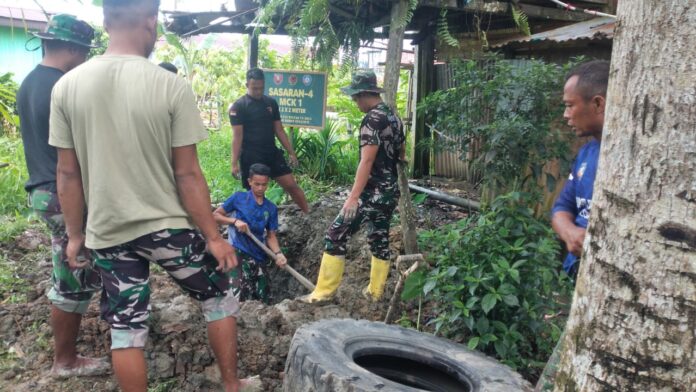 Malinau — Program TNI Manunggal Membangun Desa (TMMD) ke-125 yang dilaksanakan oleh Kodim 0910/Malinau di Desa Tanjung Lapang, Kecamatan Malinau Barat, terus menunjukkan kemajuan. Pada hari ke-6 pelaksanaan, tim satgas mulai melakukan pembangunan sarana mandi, cuci, kakus (MCK) untuk warga setempat.