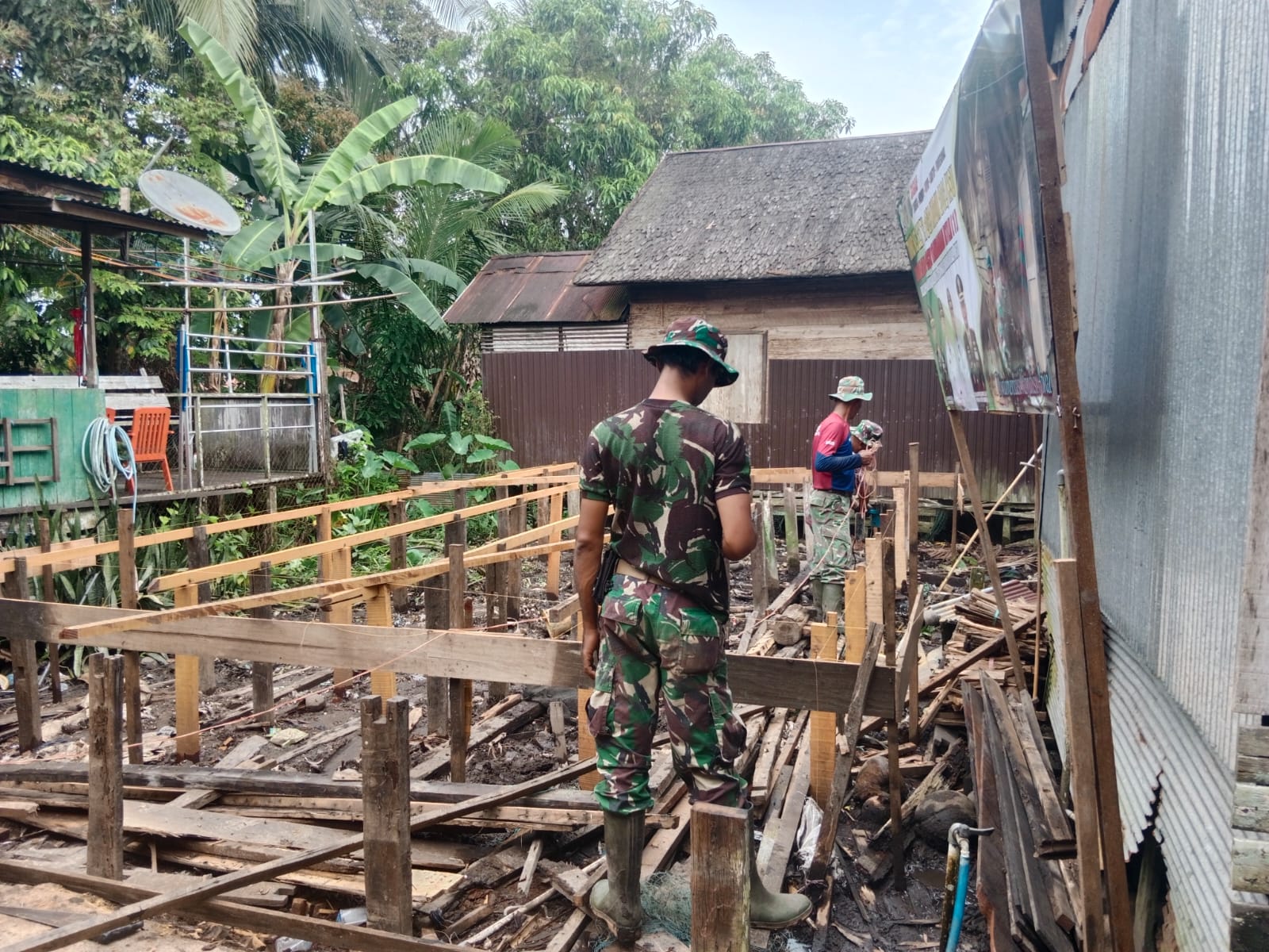Proses pengerjaan RTLH dilakukan secara gotong royong oleh anggota Satgas TMMD bersama warga setempat. Kebersamaan tersebut mencerminkan kemanunggalan TNI dan rakyat yang menjadi roh utama pelaksanaan TMMD.
