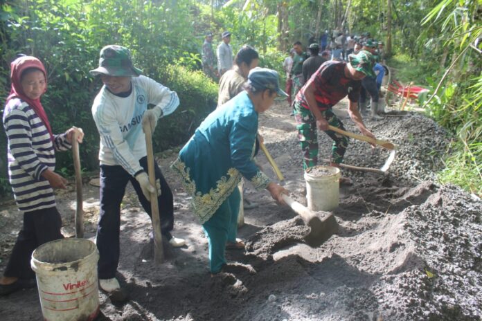 Kebumen – Pemandangan mengharukan tersaji di lokasi sasaran fisik rabat beton TMMD Reguler ke-127 Kodim 0709/Kebumen di Desa Somagede, Kecamatan Sempor, Rabu (11/02/2026). Tak hanya prajurit TNI dan kaum lelaki, para ibu rumah tangga pun turun langsung berjibaku di medan pekerjaan demi terwujudnya jalan desa yang lebih baik.