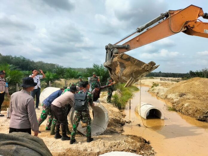 Seberang, Kuansing, – Satuan Tugas (Satgas) TNI Manunggal Membangun Desa (TMMD) ke-127 Kodim 0302/Inhu memulai pekerjaan pembukaan jalan yang menghubungkan Desa Rawang Ogung dengan Desa Teratak Jering, Kecamatan Kuantan Hilir Seberang, Kabupaten Kuantan Singingi pada hari Kamis, 12 Februari 2026, pukul 08.30 WIB.