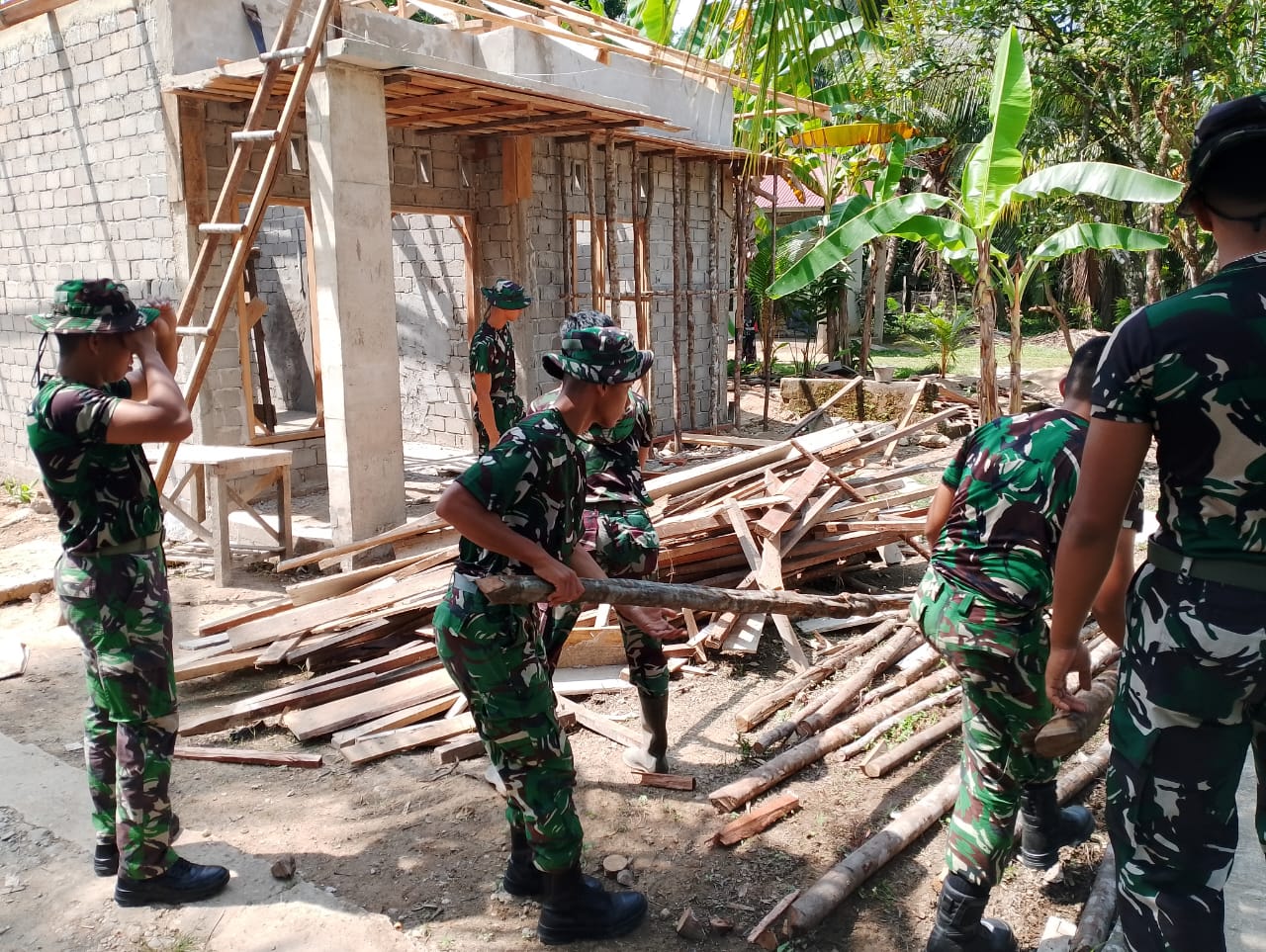 TMMD ke-127 Kodim 0302/Inhu : Pemasangan Atap, Plester Dinding RLH Ibu Baida Dikebut