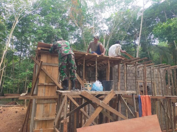 Kuantan Singingi – Program TNI Manunggal Membangun Desa (TMMD) ke-127 Kodim 0302/Inhu terus menunjukkan progres signifikan dalam mewujudkan impian masyarakat memiliki rumah yang layak huni. Pada hari Jumat, 20 Februari 2026, pukul 08.30 WIB, kegiatan TMMD difokuskan pada melanjutkan pengerjaan pemasangan mal (cetakan) untuk pengecoran dak di rumah layak huni milik Bapak Hamidan, yang berlokasi di Dusun 1 Desa Tanjung, Kecamatan Kuantan Hilir Seberang, Kabupaten Kuantan Singingi.