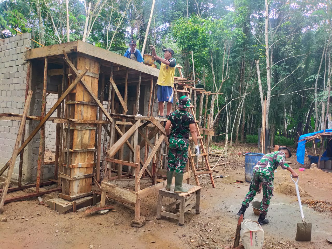 Kuantan Singingi – Program TNI Manunggal Membangun Desa (TMMD) ke-127 Kodim 0302/Inhu terus menunjukkan kemajuan signifikan dalam meningkatkan kualitas hunian masyarakat. Pada hari Minggu, 22 Februari 2026, kegiatan TMMD difokuskan pada pengecoran dak rumah layak huni milik Bapak Hamidan, yang berlokasi di Dusun 1 Desa Tanjung, Kecamatan Kuantan Hilir Seberang, Kabupaten Kuantan Singingi.