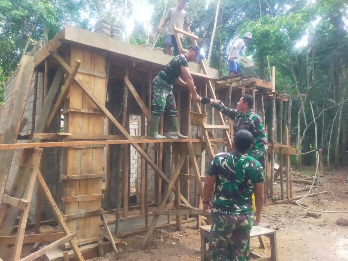 Kuantan Singingi – Program TNI Manunggal Membangun Desa (TMMD) ke-127 Kodim 0302/Inhu terus berupaya mewujudkan impian warga memiliki hunian yang layak. Pada hari Senin, 23 Februari 2026, kegiatan TMMD difokuskan pada melanjutkan pemasangan batako di rumah layak huni milik Bapak Hamidan, yang berlokasi di Dusun 1 Desa Tanjung, Kecamatan Kuantan Hilir Seberang, Kabupaten Kuantan Singingi.