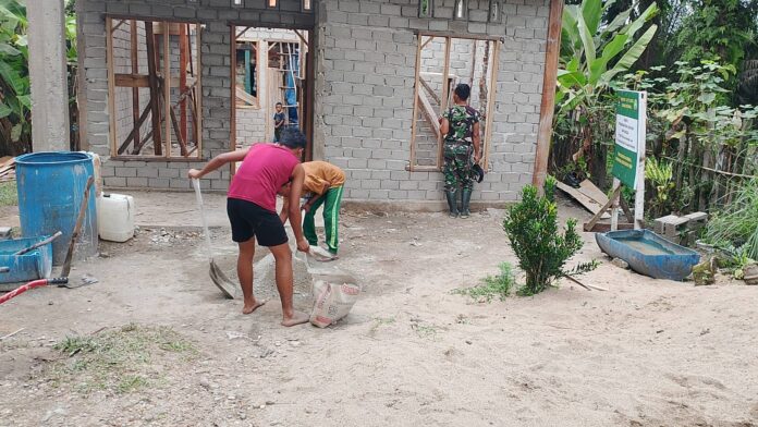 Kuantan Singingi – Program TNI Manunggal Membangun Desa (TMMD) ke-127 Kodim 0302/Inhu terus memacu pembangunan rumah layak huni milik Bapak Masrizal di Dusun 2 Desa Perhentian Luas, Kecamatan Logas Tanah Darat, Kabupaten Kuantan Singingi. Pada hari Minggu, 01 Maret 2026, Satgas TMMD bersama masyarakat setempat bahu membahu melanjutkan pekerjaan plester dinding, sebagai bagian penting dari upaya mewujudkan hunian yang layak dan nyaman bagi Bapak Masrizal dan keluarga.