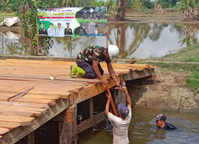 Amuntai – Program TNI Manunggal Membangun Desa (TMMD) ke-127 Tahun Anggaran 2026 yang dilaksanakan Kodim 1001/Hulu Sungai Utara–Balangan terus menunjukkan progres signifikan. Hingga Sabtu (14/02/2026), pembangunan jembatan penghubung jalan usaha tani di Desa Hambuku Hulu, Kecamatan Sei Pandan, Kabupaten Hulu Sungai Utara, telah mencapai 50 persen.