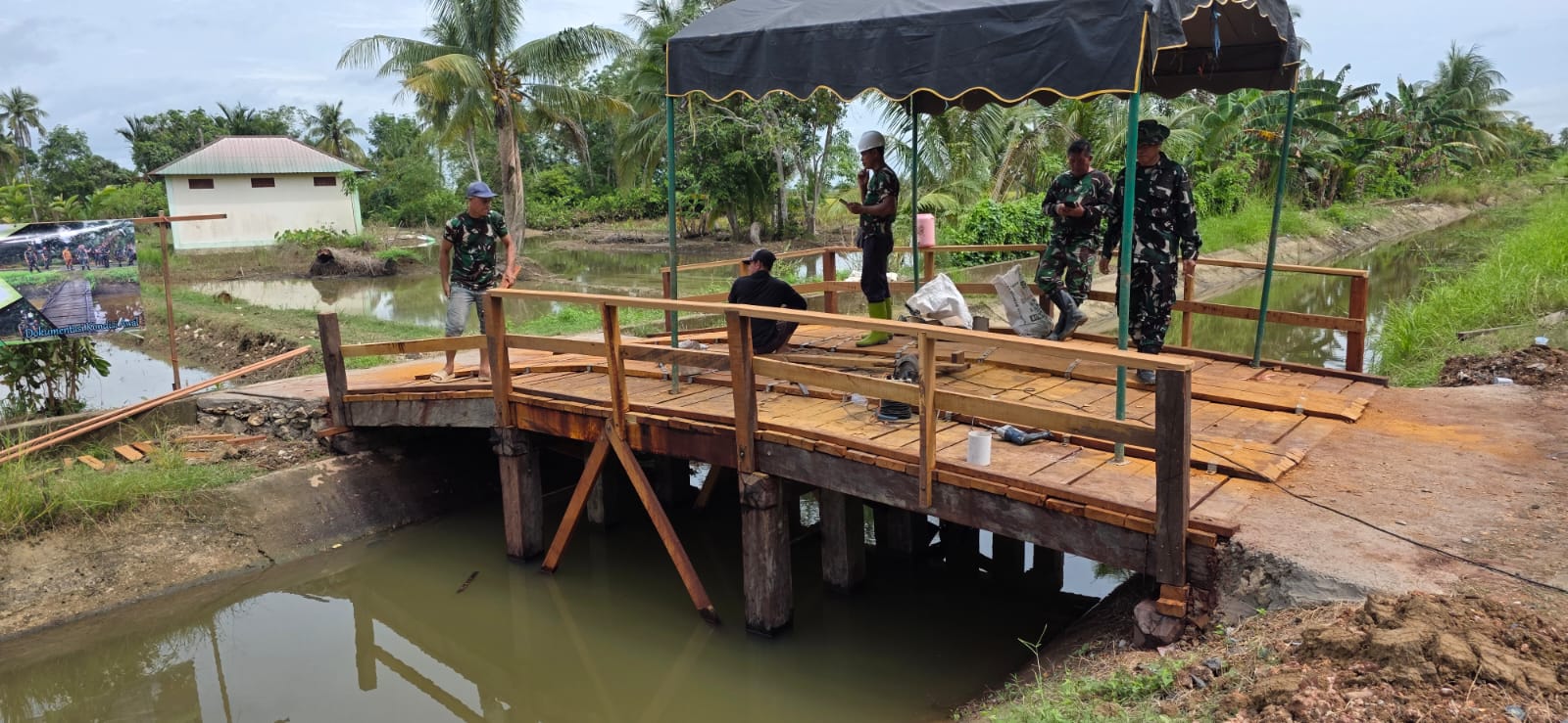 Amuntai – Program TNI Manunggal Membangun Desa (TMMD) ke-127 Tahun Anggaran 2026 yang dilaksanakan Kodim 1001/Hulu Sungai Utara–Balangan menunjukkan perkembangan signifikan. Hingga Senin (23/02/2026), pembangunan jembatan penghubung jalan usaha tani di Desa Hambuku Hulu, Kecamatan Sei Pandan, Kabupaten Hulu Sungai Utara, telah mencapai 95 persen.