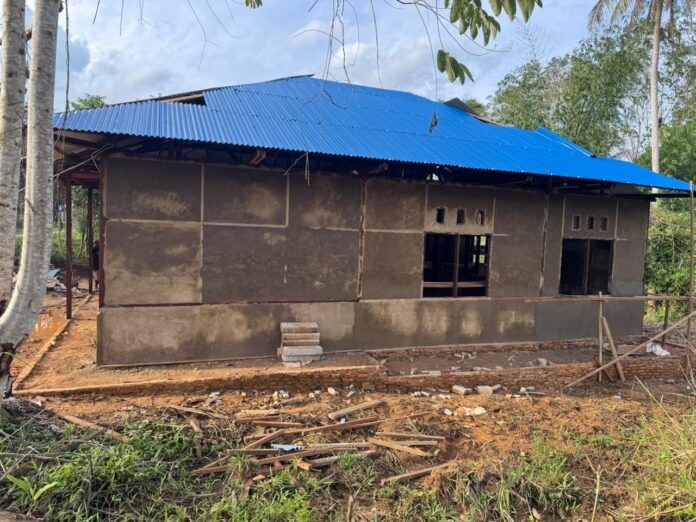 Mappi – Impian Bapak Yohanis Boskow Avu untuk memiliki rumah yang nyaman dan indah di Kampung Yibin, Distrik Venaha, Kabupaten Mappi, semakin dekat dengan terwujud. Satgas TMMD (TNI Manunggal Membangun Desa) ke-127 Kodim 1704/Mappi terus memacu pembangunan rumah Bapak Yohanis, dengan fokus pada pemasangan seng, pemasangan batu, dan plester dinding pada hari Minggu (01/03/2026).