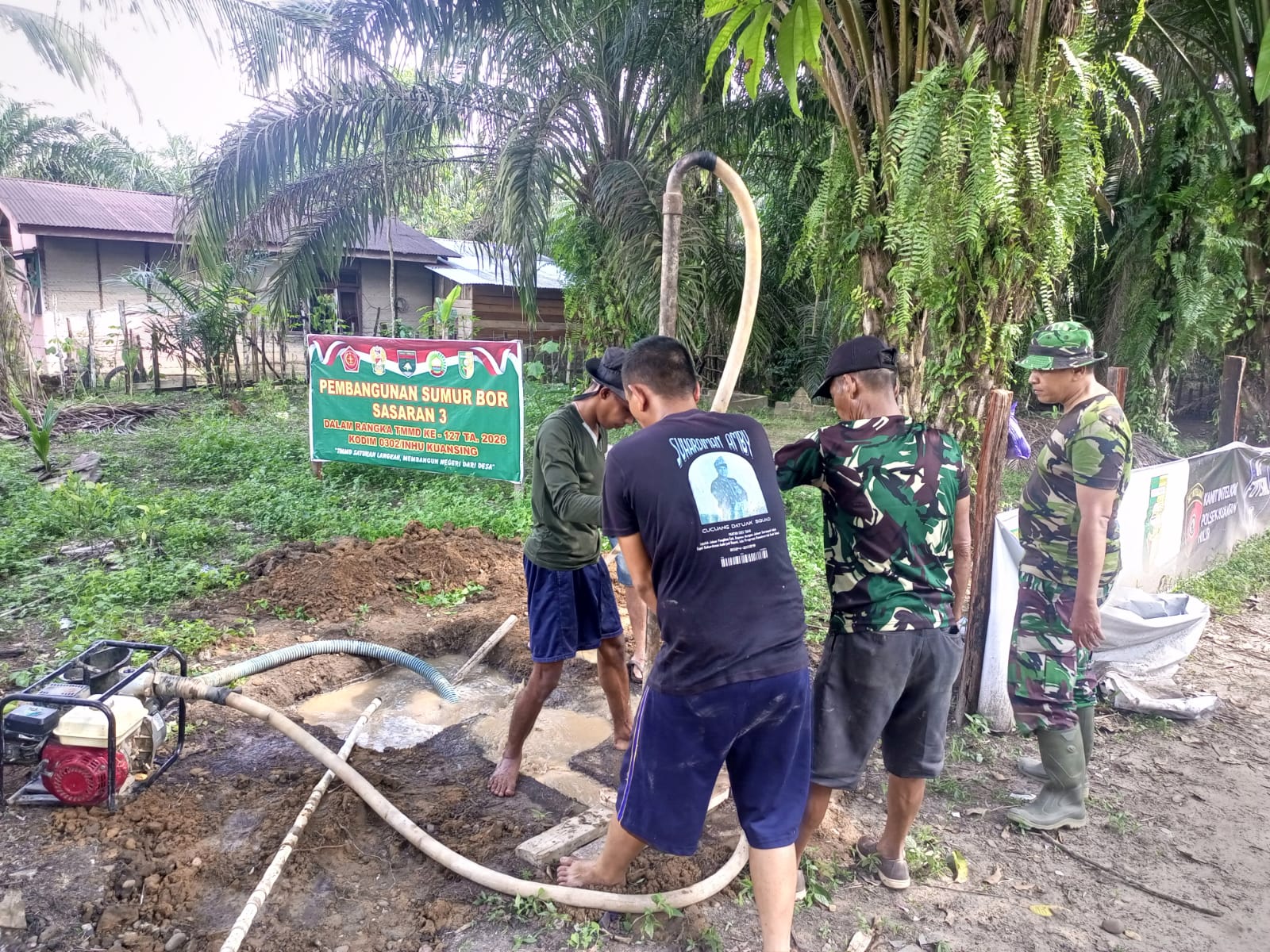 Kuantan Singingi – Program TMMD ke-127 Kodim 0302/Inhu terus menunjukkan komitmen nyata dalam meningkatkan kesejahteraan masyarakat melalui pembangunan infrastruktur dasar. Pada hari Senin, 2 Maret 2026, anggota Satgas TMMD bersama masyarakat di Kecamatan Pangean, tepatnya di RT 01 Dusun Batang Moncak, melaksanakan kegiatan pembangunan sumur bor yang bertujuan untuk memenuhi kebutuhan air bersih warga setempat.
