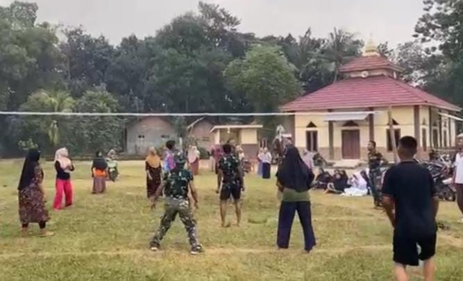 KOTAMETRO – Personel Satgas TMMD ke-125 Kodim 0411/KM yang dipimpin Letda Inf Fillawanto menggelar olahraga bola voli bersama warga Kampung Sukanegara untuk melepaskan kepenatan bekerja seharian. Kegiatan ini diikuti bapak-bapak, ibu-ibu serta pemuda setempat, menciptakan suasana hangat dan penuh kekompakan. Kamis (14/08/2025)