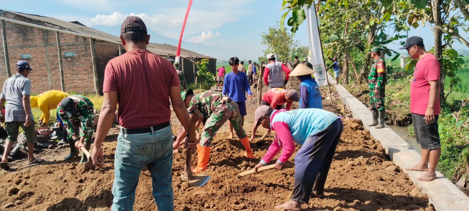 Suara Gemuruh alat dan tawa keakraban memecah kesunyian, membuktikan bahwa panas terik bukanlah penghalang bagi kemanunggalan TNI dan rakyat dalam menciptakan perubahan nyata di Desa Puro.