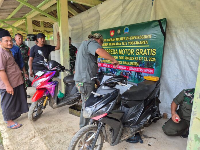 Kebumen – Kepedulian TNI terhadap masyarakat kembali diwujudkan melalui kegiatan sosial berupa servis dan ganti oli gratis bagi warga Desa Somagede. Kegiatan ini dilaksanakan oleh Denapal IV/2 Yogyakarta dalam rangka mendukung pelaksanaan TMMD Reguler ke-127 yang diselenggarakan oleh Kodim 0709/Kebumen.Minggu (15/2/2026).