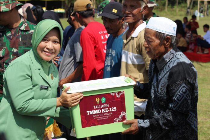 Konsel – Berakhirnya Program TMMD 125 di Kecamatan Asinua, Kabupaten Konawe, kini Kodim 1417/Kendari berikan tali asih berupa bantuan berupa 200 paket sembako terhadap masyarakat yang kurang mampu.