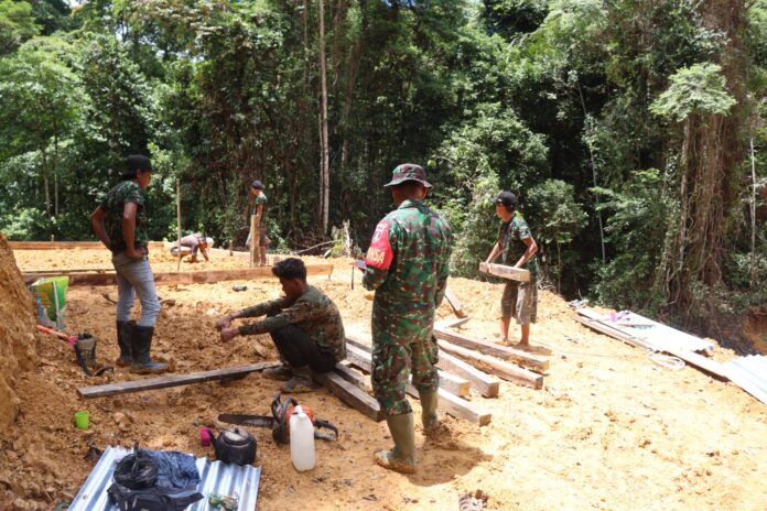 MALINAU, Kalimantan Utara,– Satgas TNI Manunggal Membangun Desa (TMMD) Ke-125 Tahun 2025 Wilayah Perbatasan Kodim 0910/Malinau membangun sebuah Rumah Singgah di area pembukaan badan jalan baru di Jl. Cristian Senter RT.13 Desa Tanjung Lapang, Kecamatan Malinau Barat Kabupaten Malinau, Minggu (10/8/2025).