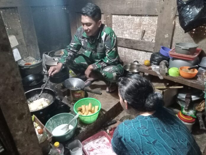 WUJUDKAN KEMANUNGGALAN TNI DENGAN RAKYAT, SERDA HENDRO BANTU MASAK BUKA PUASA DALAM TMMD KE-127